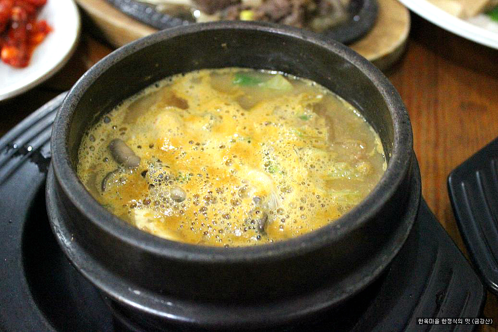 청국장인데.. 두부와 버섯이 많이 들어가있네요.