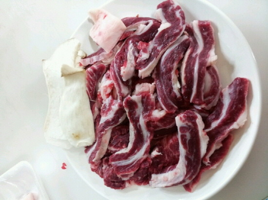 자 이제 메인메뉴 갈비살반근이 나왔습니다. 정말 고소하고 맛있었구요 요근래 먹었던 고기랑은 틀리구나 싶더라구요 한근에 49000원인가 했던거 같은데 한우암소1등급만 쓰신다더라구요