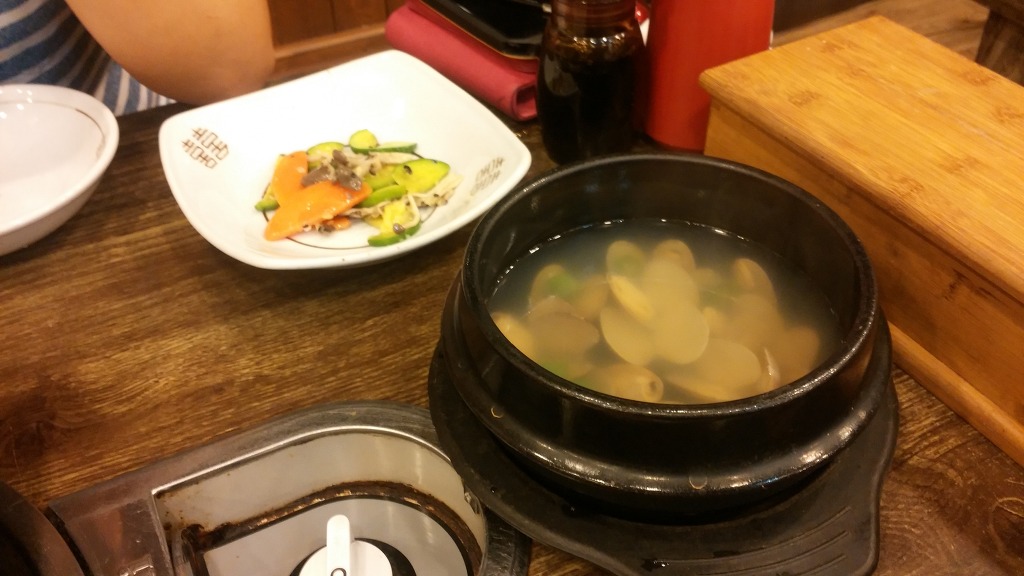 조개국. 적당히 칼칼하고 조개도 많이 들어가있고 좋던대요?ㅎㅎ