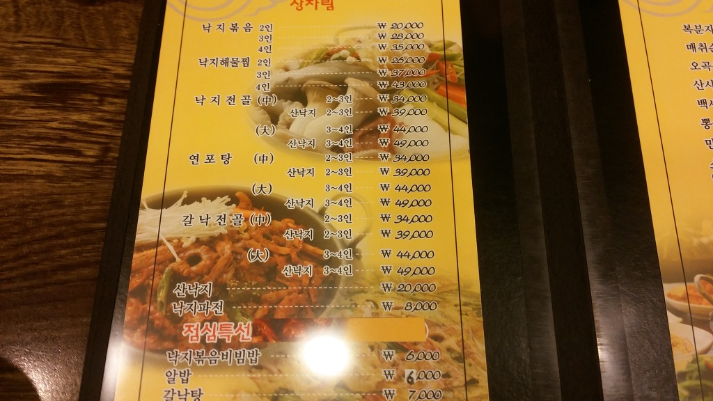 | 메뉴/가격 | 낙지볶음(2인) - 20000원 / 공기밥 - 1000원 / 볶음밥 - 2000원 |