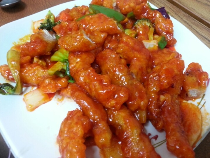 찹쌀 탕수육이네요. 쫄깃하니 맛나네요.. 볶음밥도 가격이 있어서인지 새우도 제법 들었고요. 쟁반짜장은 걍 먹을만 하네요..