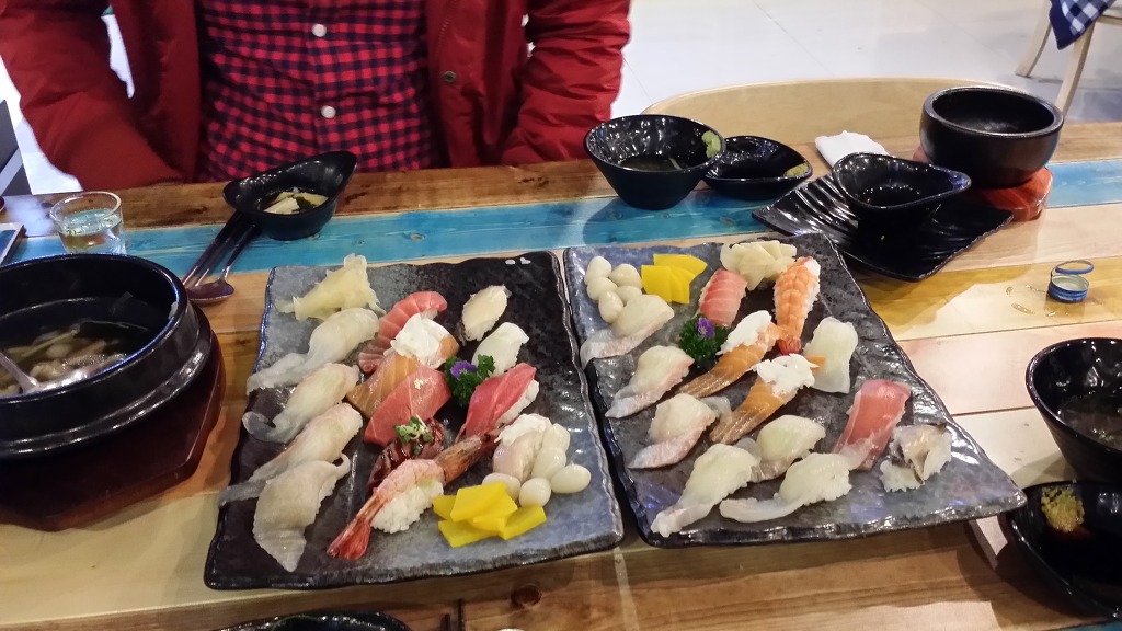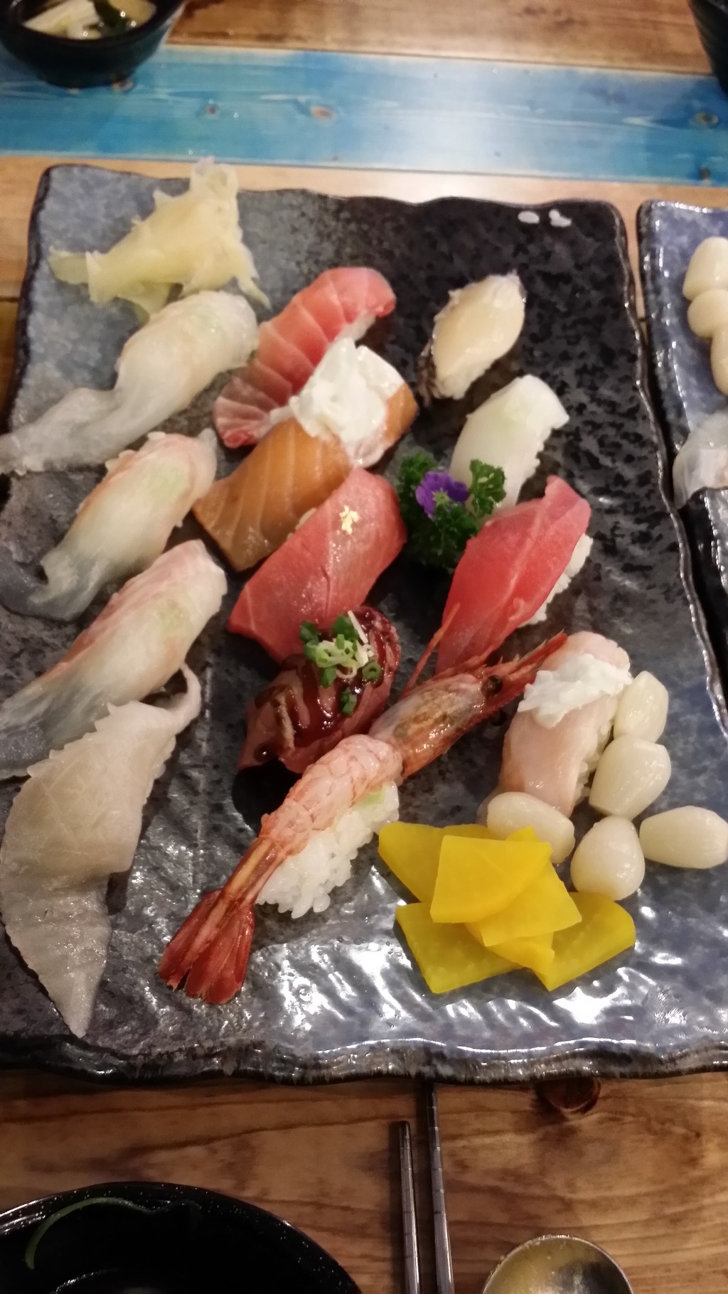 언제 손질한건지 생새우 특유의 담백하고 달달한맛은 안나네요 한우초밥도 제가 먹었는데 와사비 몽땅.. 고기맛은 못느꼈습니다 코만맵더군요 둘이 같이 느낀건데 초밥의 밥맛은 정말좋습니다 곰초밥을 가장 조아하는 일행이 밥맛은 여기가 훨씬 좋다고 하더라구요 저도 밥은 참 맛있었다는.. 나머지 초밥들도 그냥그냥 soso