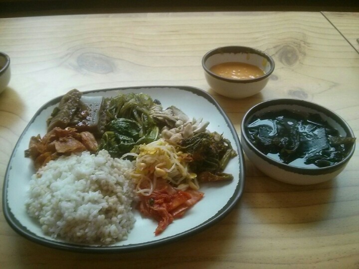 한증막 내에있는 건강부페 건강밥상입니다 가격은7000원이구요 간은 좀 센편이고 음식은 부페식으로 10가지정도입니다 한증막에서 땀좀 빼고 먹으니 질들어가네요 맛있다정도는아니어도 그냥 건강식이다 생각하면 되겠죠 끝