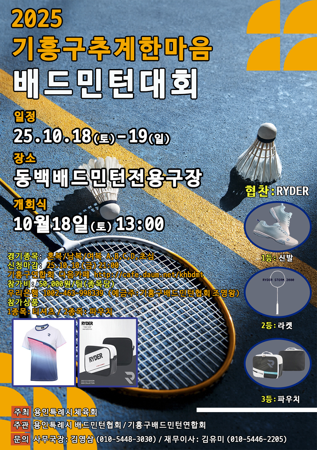 2025 용인특례시 기흥구 추계 한마음 배드민턴대회를 공지드립니다.