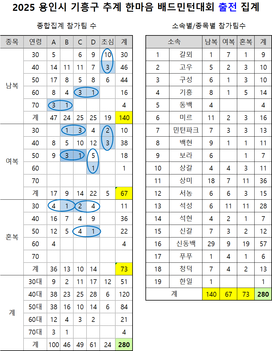 2025 용인특례시 기흥구 추계 한마음 배드민턴대회 참가선수 확정명단을 공지합니다.