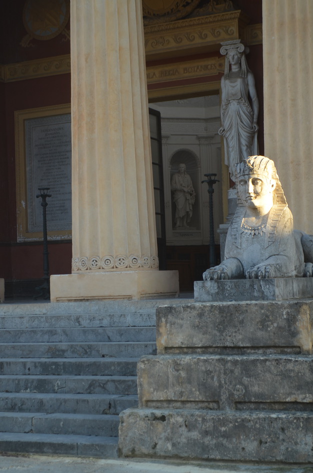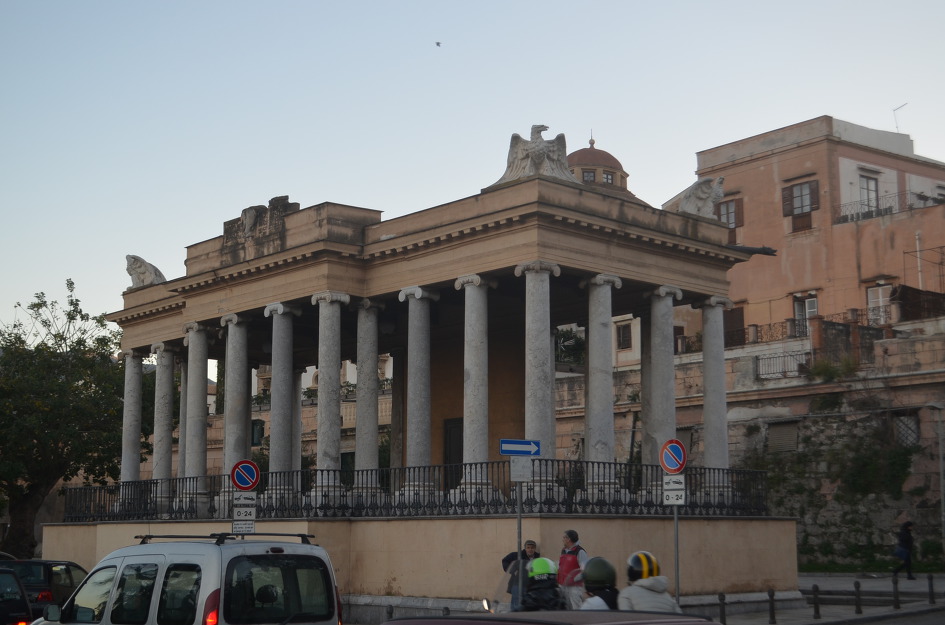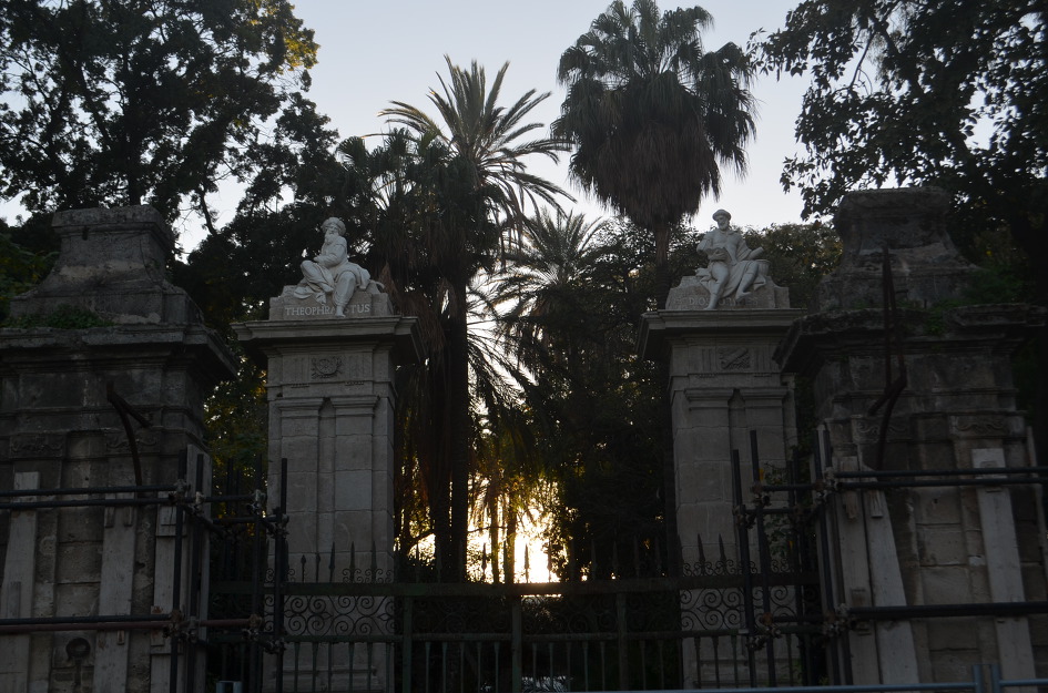 항구를 둘러보다가 (칼사 공원)에 잠시 들렸는데 규모가 좀 작은 박물관과(휴관일) 시민들이 많이 모여있는 조각공원의 모습을 만날 수 있었다. 생각하기에는 오래전에 왕실의 궁전이었거나 아카데미 같은 고대의 학술원이나 학교(칼리지)가 있었던 장소로 짐작이 갔다. 기념비와 조각상들이 많았다. 그리고 정확한 설명은 없었지만, 짐작하기로 내가 팔레르모에서, 아니 시칠리아에서 가장 만나고 싶어했던 분의 아주 커다란 조각상이 정말로 살아있는 모습처럼 그곳에 우뚝 서 있었다. 틀림없는 그분이었다. 뒤로는 페허로 변한 수풀림 속에 거대한 유적처럼 대리석 건물이 페허로 남아있었다. 그리스의 수학자 조각상이 높은 성문 위에 있는 것으로 보아 고대의 수학과 의학을 공부하던 학교라 짐작했다.