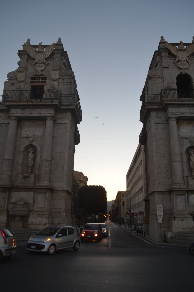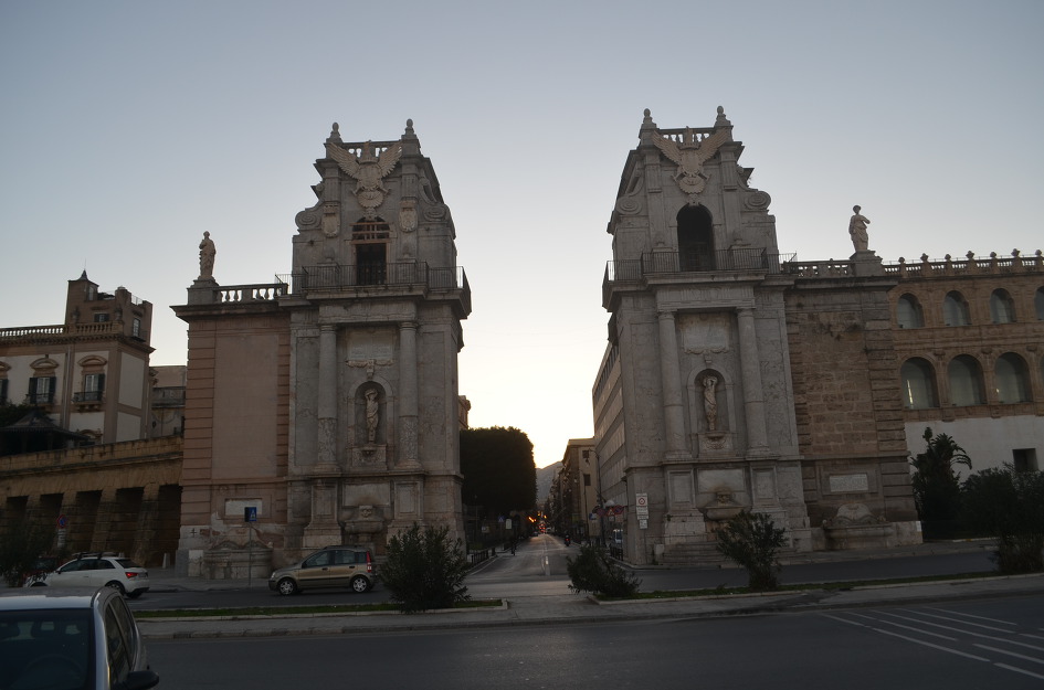 이 성문 사이로 난 일직선상의 도로를 직진하면 팔레르모 북쪽의 끝 (포르타 누오보)가 있다. 황제가 머문 (노르만 궁전)과 함께.