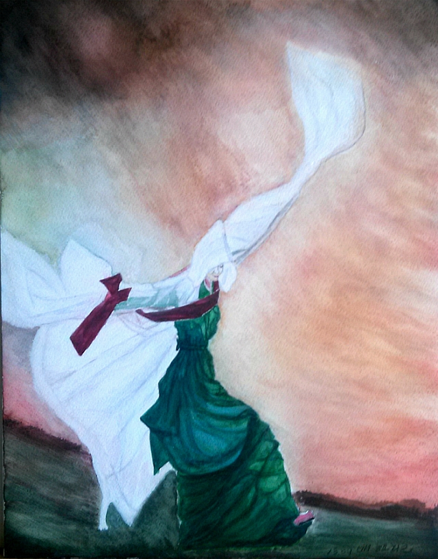 한삼자락 주변의 배경에 물을 가볍게 뿌려준후에 채색을 하면 자연스럽게 채색이 되지요