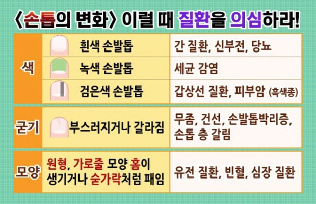[손톱을 보면 건강이 보인다. 색깔 별 의심 질환은]