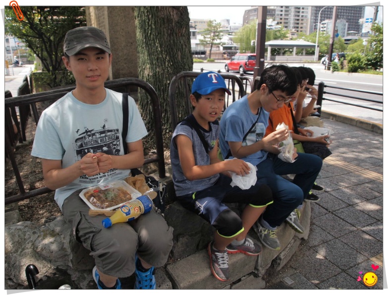 그래서 산조 게이한 역에서 내려 일본 도시락을 사서 나무 그늘에서 먹는다, 오늘 점싱은 일본 밴또다. 한국거지가 아니라, 배낭여행은 이런 거다. 배고프면 다 한다,