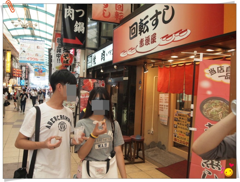 -오늘 저녁은 회전초밥집이다. 도톤보리 회전초밥 집에 사람들이 많이 찾은 곳이 센니치마에 거리다. 한참 저녁 시간에는 줄을 서서 기다려야 한다.빅카메라 빌딩에서 코메디 극장 사이와 난카이 역에서 코메디 극장 가는 상가에 있는 초밥 집은 덜 기다리고 먹을 수 있다.