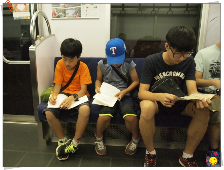 - 학생의 기본은 공부이다. 어제 낸 준 문제를 다 풀지 못한 아이들이 우지로 가는 전철에서 문제를 푼다. 안하면 오늘 쓸 돈은 없다.