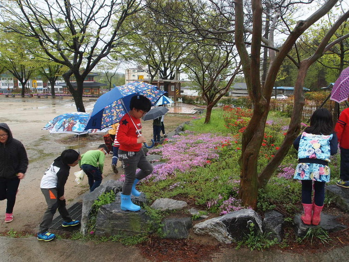 ▶비가 조금 그치어서 우산을 쓰고 관찰하기로 했습니다.