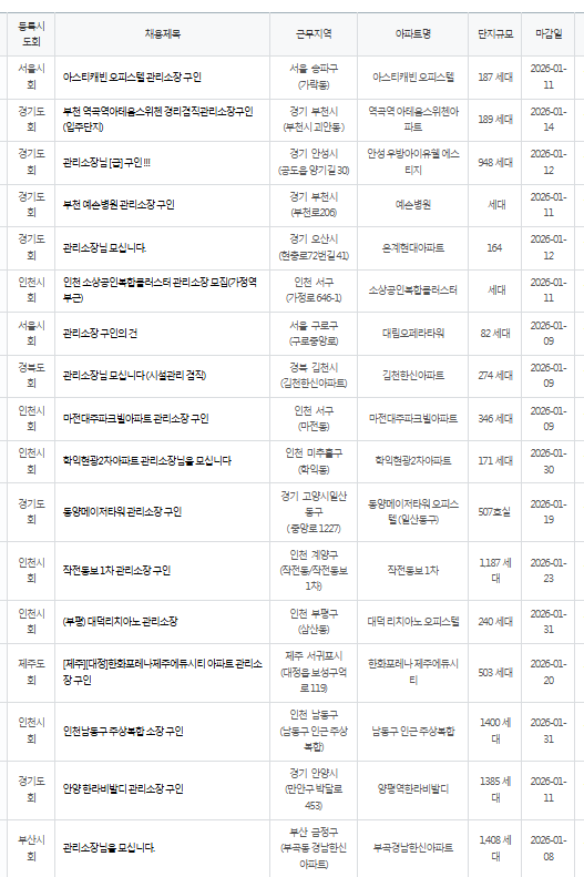 [스크랩] 관리소장 구인공고 2026.1.5 작성자등대-2|작성시간26.01.05|조회수14 목록 댓글 0 글자크기 작게가 글자크기 크게가 다음검색 스크랩 원문 : 아파트학교, APT COLLEGE (아파트관리품질등급제 ) 현재 게시글 추가 기능 열기 북마크 공유하기 신고 센터로 신고 댓글 댓글 0 댓글쓰기 답글쓰기 댓글 리스트