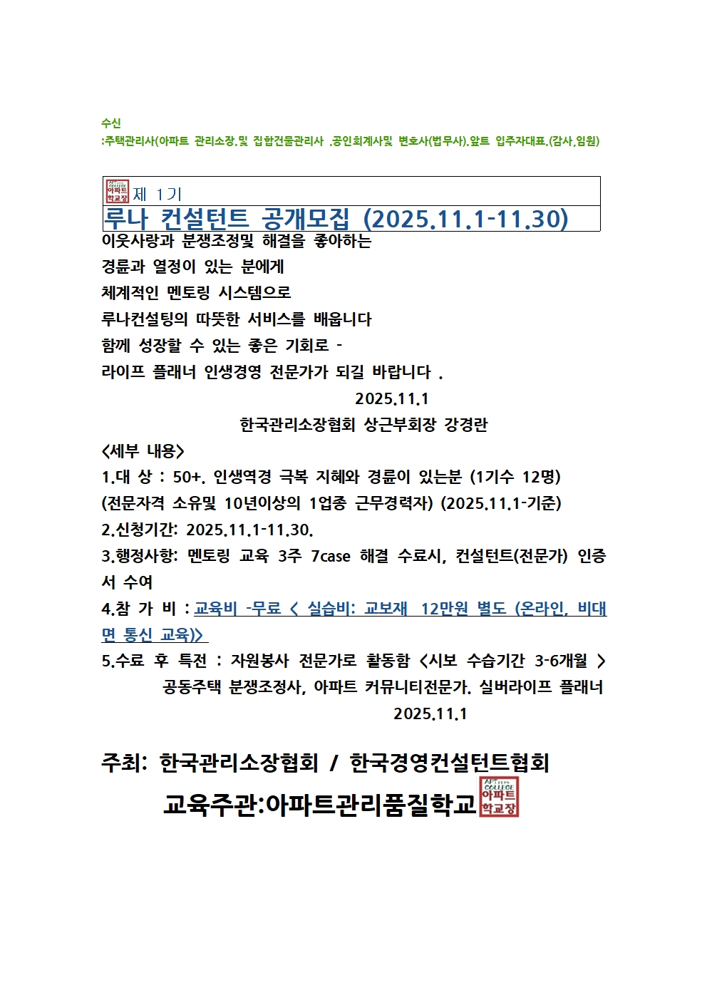 교육주관: 아파트관리품질학교