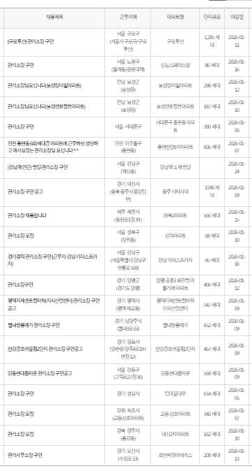 관리소장 구인공고 2026년 1.3 작성자아파트관리품질학교|작성시간26.01.03|조회수18 목록 댓글 0 글자크기 작게가 글자크기 크게가 다음검색 현재 게시글 추가 기능 열기 북마크 공유하기 신고 센터로 신고 댓글 댓글 0 댓글쓰기 답글쓰기 댓글 리스트
