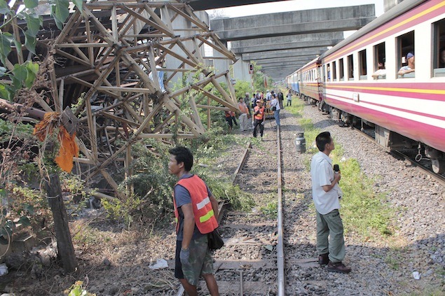 어제 붕괴사고에서 나란히 놓여 있는 구간을 지나던 열차 1대가 간발의 차로 화를 면했는데, 현재까지 붕괴사고로 인한 부상자는 보고되지 않고 있다. 무너진 구조물 잔해로 인해 방콕 북부에서 시내로 들어가는 철도노선이 막힌 상태이고, 이로 인해 철도 서비스가 지장을 받고 있다.