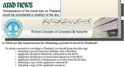 (사진) '리야드 상공회의소'(Riyadh Chamber of Commerce and Industry Council) 홈페이지는 사우디 국민들의 태국 방문이 금지되어 있다고 안내하고 있다. 하지만 사업가들은 엄격한 조건 하에서 태국을 방문할 수 있다. |