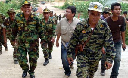 (프놈펜/Xinhua) -- 캄보디아의 웃더 미언쩌이(Oddar Meanchey) 도의 국경에 위치한 13세기에 조성된 따모안톰(Ta Moan Thom, 태국어-따믄톰[Ta Muen Thom]) 사원 및 따끄라베이(Ta Krabey, 태국어-따끄와이[Ta Kwai]) 사원 주변에서, 토요일(4.30) 태국-캄보디아 양국 군대가 앞선 2차례의 휴전을 파기하면서 9일째 교전을 이어갔다고, 전선의 한 야전 지휘관이 밝혔다.
