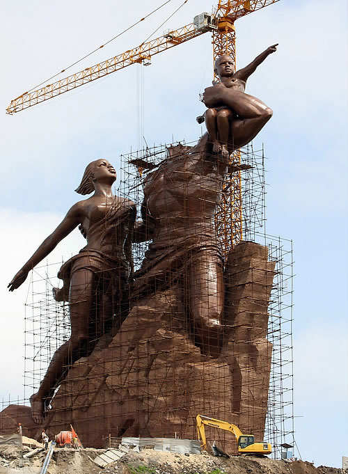 (자료사진) 만수대 창작사가 세네갈 수도 다카르에 세운 '아프리카 르네상스 기념조형물'의 건설 당시의 모습. "위키피디아 영문판"에 따르면, 높이가 49미터에 달한다. |