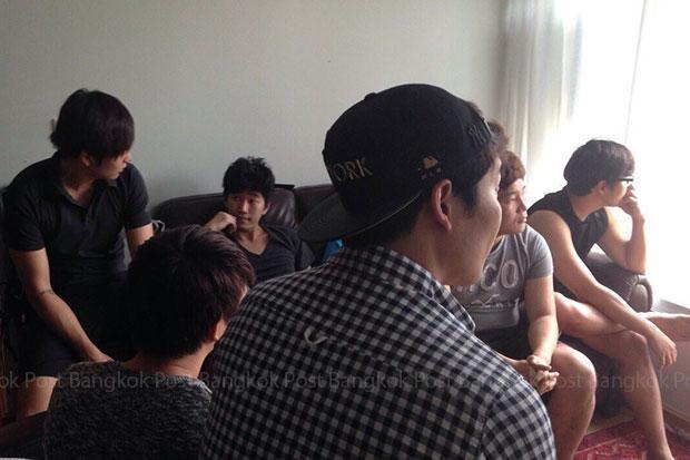 (사진: Wassayos Ngamkham / The Bangkok Post) 태국 경찰이 화요일(6.23) 단속을 통해 체포한 한국인 용의자 7명의 모습. |