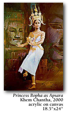 상단 좌측의 그림은 미국에 망명 중인 캄보다아 출신의 세계적인 화가 켐 짠타(Khem Chantha)가 그린 공주의 모습이다.