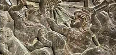 팔꿈치를 이용한 싸움기술을 보여주는 바이욘 사원의 부조상