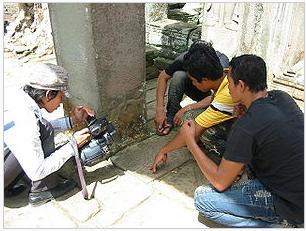 (사진) 바이욘사원의 격투장면 부조를 조사하고 있는 CTN팀.