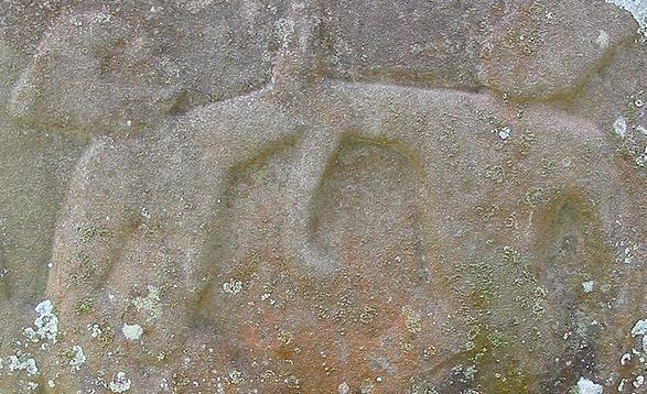 (사진) 바이욘사원에 조각되어 있는 발차기를 방어하는 동작.