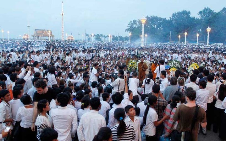 (사진: CEN) 시하누크 국왕의 유해가 캄보디아에 도착한 10월17일 왕궁 앞에 모여든 추모 인파의 모습. |