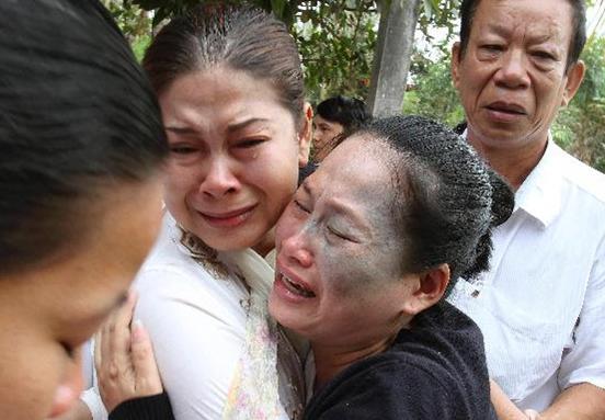 (사진: Reuters) 불법벌목 현장을 감시하다 군인의 총격으로 사망한 저명 환경운동가 춧 우티 씨의 부인(우측)이 장례식장에서 오열하고 있다. |