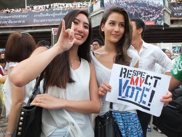 그런데 최근 자신의 정치적 거점인 방콕 시민들을 중심으로 하는 극우 보수 반정부 시위대가 초기에 "부정부패 척결" 주장을 하자, "부패척결이라면 내가 빠질 수 있나"라면서 반정부 시위대 집회장에 찾아가 무대에서 연설을 하겠다고 떼를 쓰다, 태국 수꼴 반정부 시위대의 사수대원들에게 멱살이 잡히기도 했습니다.