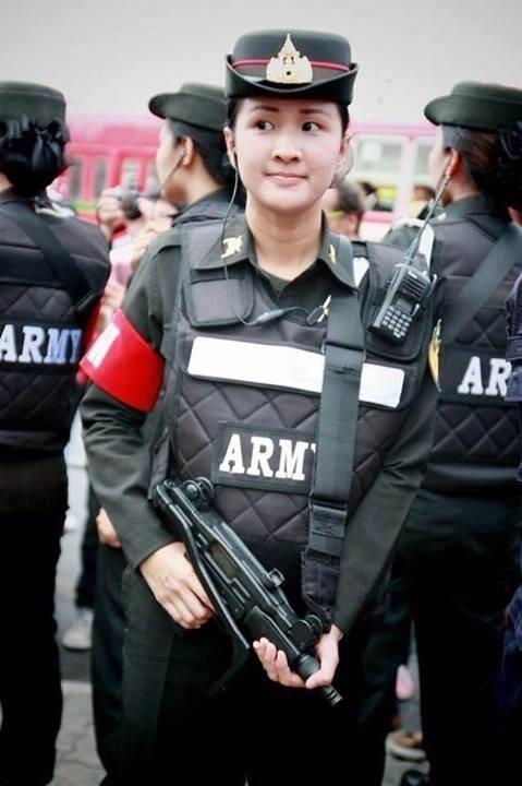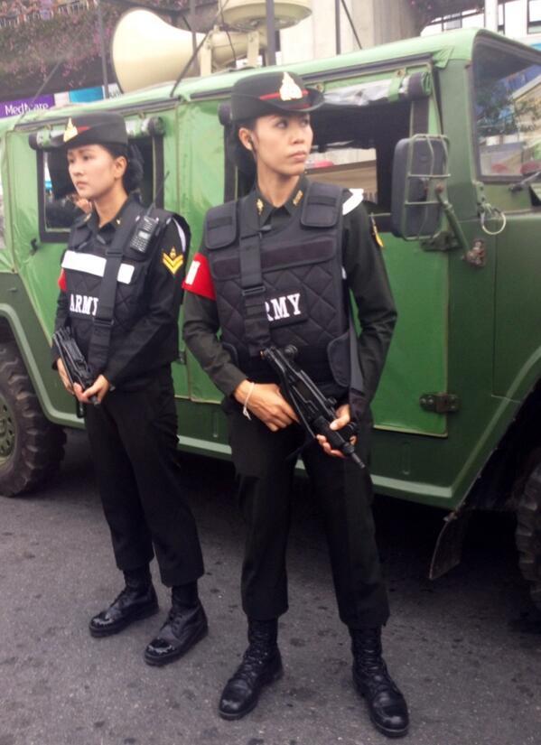 태국 방콕 전승기념탑 주변에 배치된 여성 헌병들.