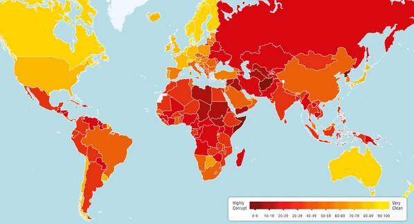 [지도] 세계 각국별 부정부패 상황 - 한국이 북조선보다는 양호함