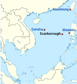 (지도: 위키피디아 영문판) 스카보러 암초의 위치.