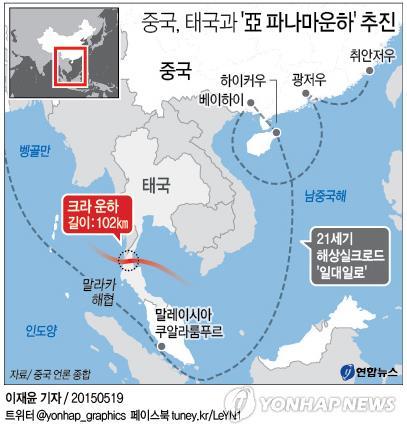 (타이베이·상하이=연합뉴스) 노해랑 통신원 한승호 특파원 = 중국과 태국이 '아시아판 파나마 운하'로 일컬어지는 크라 운하 건설을 위해 양해각서(MOU)를 체결했다는 대만 언론의 보도가 나왔다. 그러나 중국 정부는 보도내용을 부인하고 나서 이 계획의 진위에 관심이 쏠리고 있다.