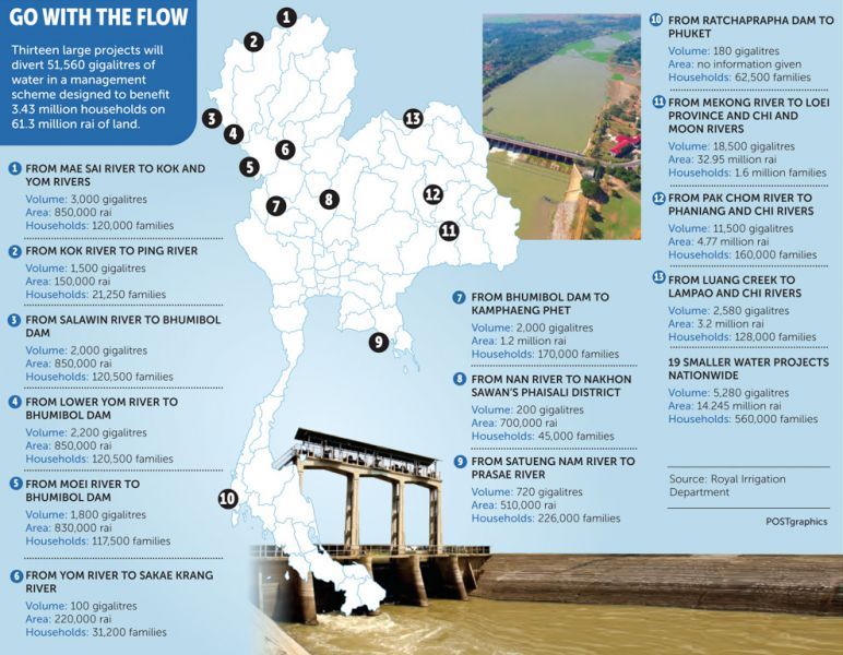 RID에 따르면 태국은 현재 십여 년 만의 최악의 물 부족 사태를 겪고 있다. 태국 정부는 이 상황에 대처하기 위해 여러가지 정책을 시행 중인데, 그 중 하나가 태국 접경지대의 강 흐름을 바꾸는 18억 달러 규모의 이번 사업이다.