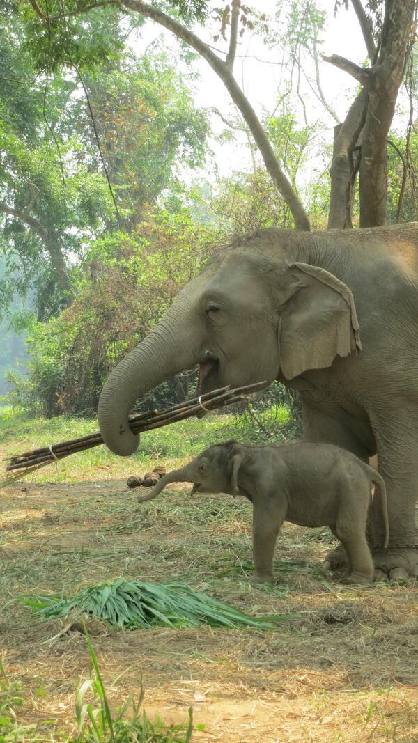 (사진: John Roberts) 코끼리 축제 첫날 인기를 독차지한 생후 열흘된 넝삼(Nong Sam) 군의 모습. |