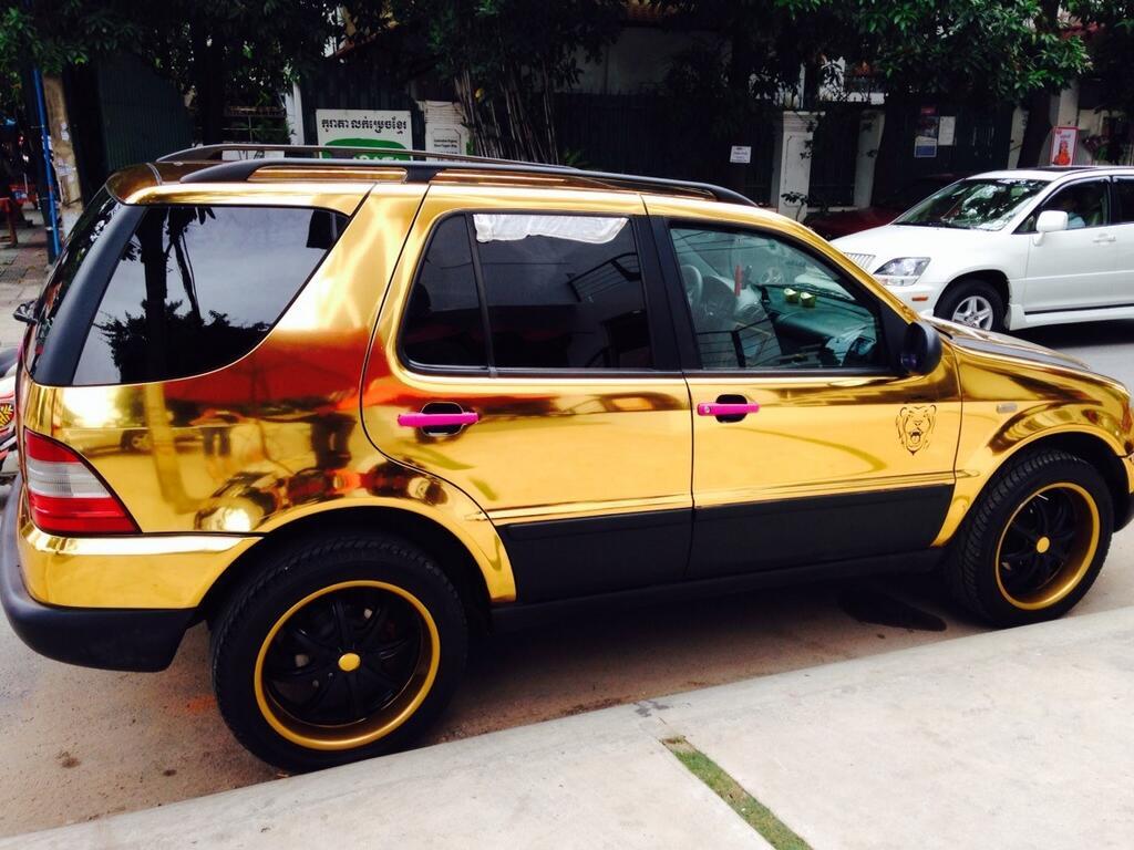 (사진: Julia Wallace) 프놈펜의 거리에 나타난 황금빛 벤츠 SUV 개조 차량
