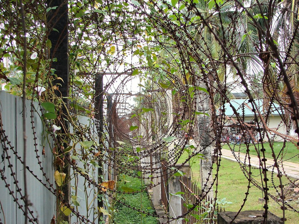 철조망이 둘러쳐져 있는 "S-21 교도소"의 외곽 담장. [사진촬영] Bjørn Christian Tørrissen 2005-11-28. ☞ 관련 게시물 바로가기 : "[시설] 뚜올 슬렝 학살박물관 : S-21 수용소" |