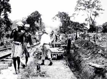 (사진) "죽음의 철도" 건설현장. 방콕-양곤을 연결하는 415 km의 이 철도는 아시아인 징용 노동자 18만명과 연합국 포로 6만명이 동원되어 건설됐다. 그 중 노동자 9만명과 포로 16,000명이 사망했다. 유명한 "콰이 강의 다리"도 이 철도노선 상에 위치한다.