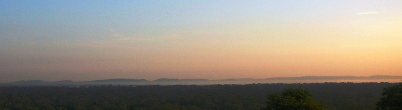 북쪽의 당렉산맥에서 남쪽인 캄보디아 평원을 향해 바라다본 전경. 여명의 모습이다.