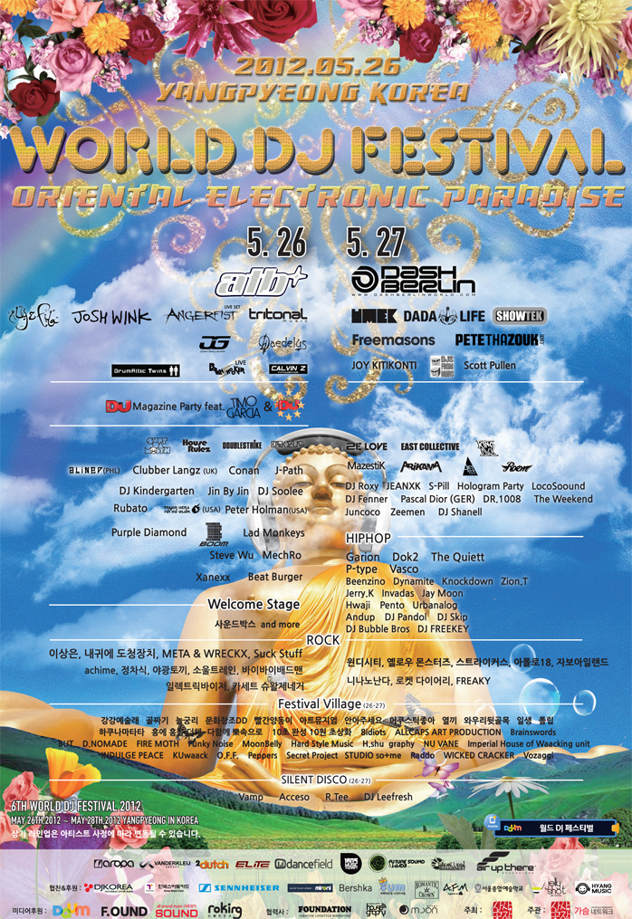대한민국을 춤추게 하는 축제! 대한민국에서 가장 재밌는 축제! 국내 최대 규모의 음악 축제 <월드 DJ 페스티벌>이 오는 5월 26일부터 1박 3일간(글 퍼온이의 소감 : "무박 3일 보내는 이도 나올듯...;;;") 경기도 양평 나루께 축제공원에서 열립니다.