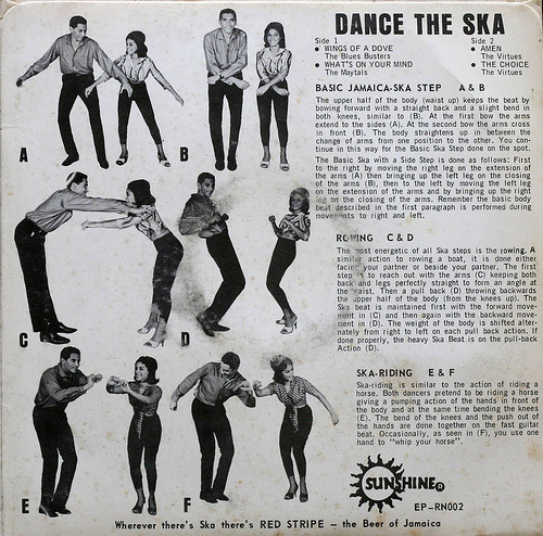 (사진) 자메이카에서 시작된 '고전적' 스카 음악에 사용된 스캥크 댄스에 관한 오래된 출판물의 설명. 주요한 동작들을 해설하고 있다. [출처] Dance Hall Geographies