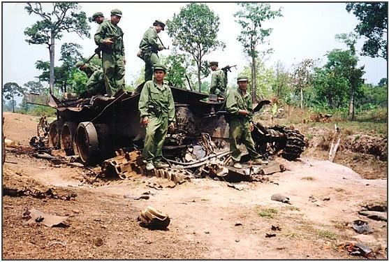 (사진) 1979년 1월에 붕괴된 크메르루즈 정권은 이후로도 약 20년간을 태국 국경지역의 반군으로서 명맥을 이어갔다. 1994년경 빠일른 인근에서 촬영된 크메르루즈 반군의 모습. (mekong.net) |