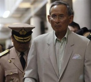 2006년 4월 총선 수주일 전, 야당인 "민주당"과 "국민민주주의연대"(PAD: 일명-노란셔츠)는 푸미폰 국왕에게 총리와 내각을 교체하여 새로운 정부를 구성해달라고 청원했다. 이러한 국왕의 개입요청은 여론의 호된 질책을 받았다. 푸미폰 국왕은 2006년 4월 26일 연설을 통해, "어명을 통해 임명한 총리가 비민주적이라 한다면, 과인의 부덕을 용서해주길 바란다. 그것은 불합리한 일"이라고 응답했다.(주34)