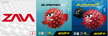 - 또, 스피드글루 효과를 내장하고 있는 스피드계 하이텐션 돌출러버로는 버터플라이 "플레어스톰(Flarestorm)"이 대표적입니다. 그 외에 엑시옴 "자바 1(Zava 1)", 안드로 "블로우피쉬(Blowfish)" 등도 여기 속합니다만, 이들은 돌기 형상으로는 스피드계이지만 개념이 다소 다르므로 별도 항목(2-4)에서 다루고자 합니다.