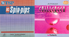 - 스핀계 돌출러버(클래식)의 대표적인 제품은 TSP의 "MD 스핀핍스(MD Spin-Pips)", 버터플라이의 "챌린저 어택(Challenger Attack)"등입니다.
