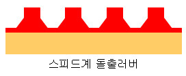 - 스피드계 돌출러버는 정통파 돌출러버라고 할 수 있습니다. 공이 떨어지는 타이밍이 짧고 스피드가 나오는 돌출러버 본래의 특성을 가지고 있는 러버입니다. 이런 부류의 러버는 돌기의 모양이 그림과 같이 되어 있습니다만 실제로 눈으로 보고 구분하기는 다소 어렵습니다.