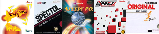 - 스피드계 돌출러버의 대표적인 제품은 TSP의 "스펙톨(Spectol)" 시리즈, 버터플라이의 "스피디 P.O.(Speedy P.O.)", 닛타쿠의 "익스프레스(Express)", 야사카의 "오리지날(Original)" 등입니다. 이들은 스피드글루 효과를 내장하지 않은 클래식 러버로서 스피드계에 속하는 것들입니다. 신형 러버인 넥시 "카이로스(Kairos)"도 여기에 속합니다.